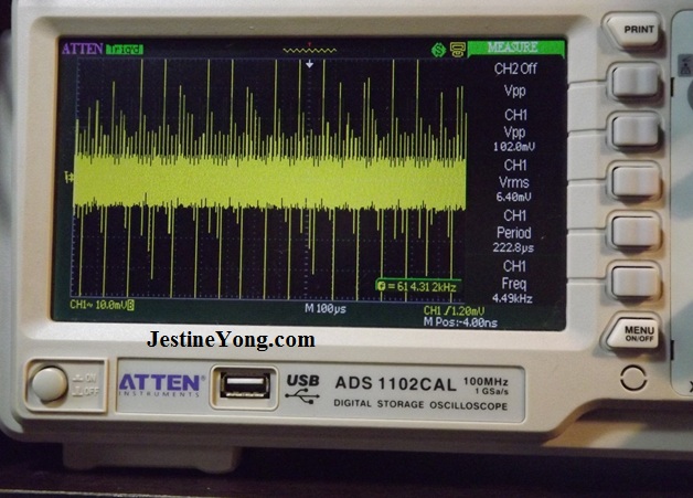 The second problem with SMPS manifested itself by a high pitch noise coming from the speaker that was connected to my Laptop. The speaker has its own amplifier which needs to be powered through a USB port. As I needed to spare the laptop USB ports for other purposes I was using an external USB power supply for the speaker. The noise was caused by Electromagnetic Interferences generated by the USB power adapter. EMI are regulated internationally and SMPS must comply. However, sometimes the minimum allowed is still too much for some applications. Again, the easy solution was building a small linear power supply that I can also use as a USB charger and to power the USB oscilloscope.