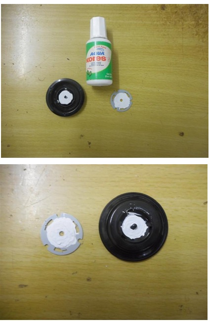 Later on comes the isolation process, I always use the Correction Fluid used to erase the ink on the pens’ writing. It dries fast, so both pieces were painted twice. The black one was painted for both sides, all this to avoid quick and future magnetization. Look at the photos below.