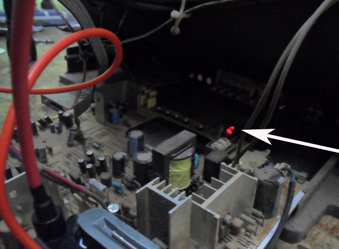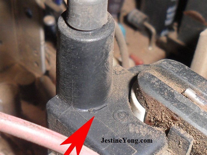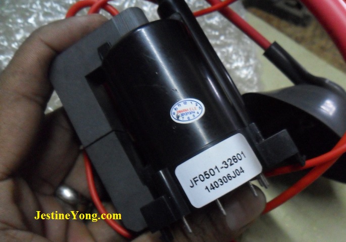 The cover was opened and when I closely looked at the flyback transformer, true enough there was a slight crack-see the photo below: