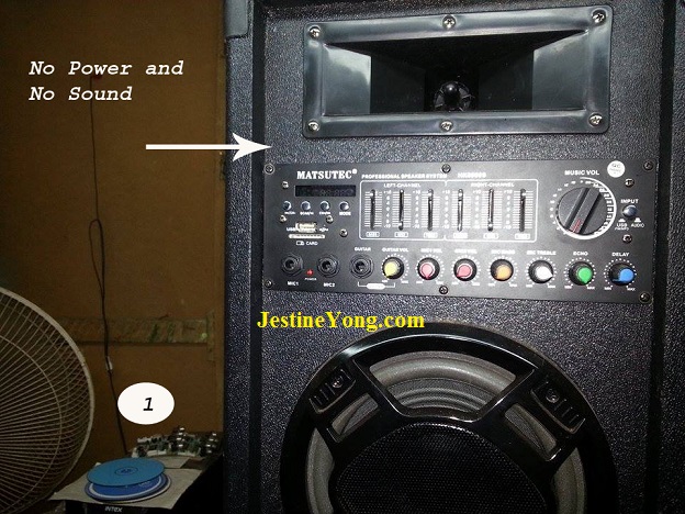 A customer brought this Matsutec Active Speaker System for repair with the complaint of no power/no sound.