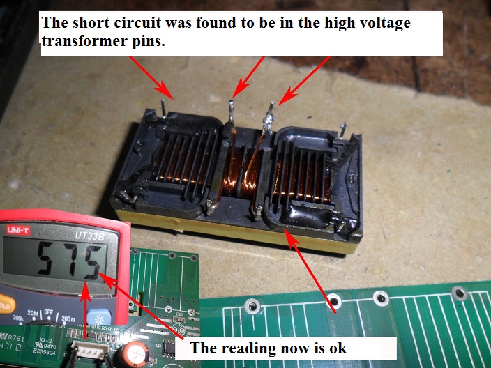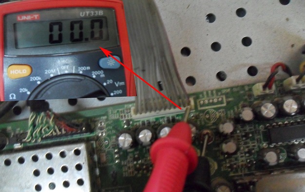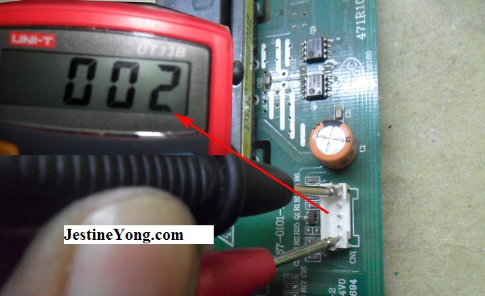 The first board to check was the power supply board. However, the fuse and other major components were checked to be in good condition. I powered up the power supply and check on the output voltages in the mainboard and inverter connectors. It reads zero volt, so this means either the power supply itself has problem or something shorted in the mainboard or inverter board that causes zero volt.