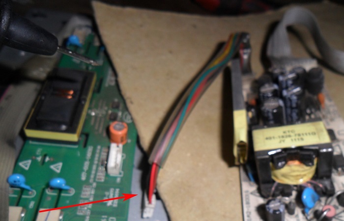 I was actually surprised to see that once the connector was removed the LCD TV power LED lighted up!