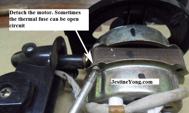 I opened the fan cover and removed the fan motor screws. This is to check if there is any thermal fuse reside in it.