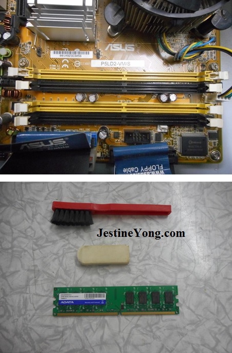 First idea that came to my mind was to extract the RAM DDR2 module of the PCB to clean the golden contacts with my STAEDTLER eraser.