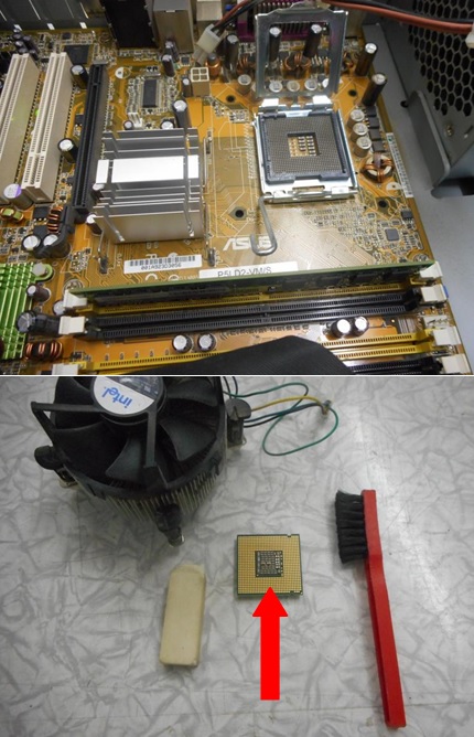 This PC (ASUS P5LD2-VM/S) was brought to me and the complaint was the Motherboard was fully dead.