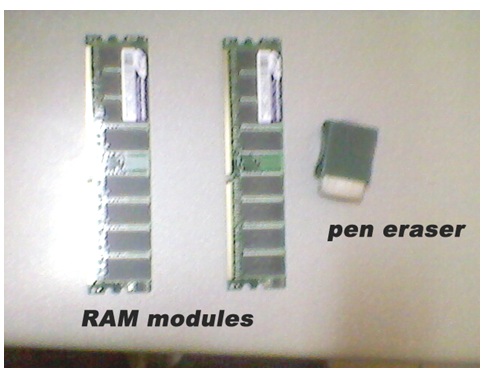 The chassis cover was removed and the two RAM modules were extracted for cleaning them up with a Pencil Eraser.