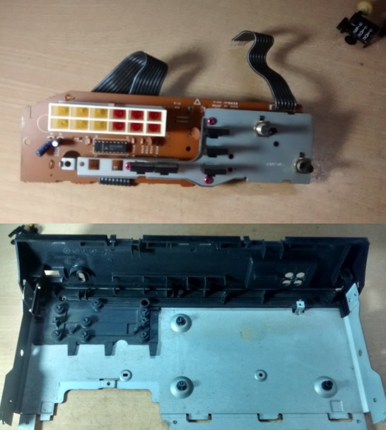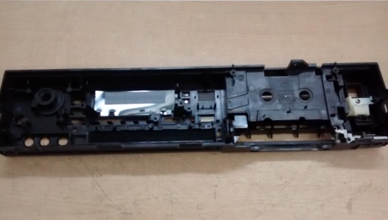 I cleaned all parts once again, using a brush. As can be seen from the first picture below, the tape deck panel was hollow at the bottom, which was covered by a thin cardboard, cut from a CD Cover. This was done by my friend to prevent lizards getting in. The original covering lid was missing when he had bought this long back from the second hand market.