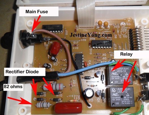 Once the cover was opened, I can see the main fuse holder, bridge rectifier, relays and couple of ICs. Just like any other electronic equipment with the complaint of no power, the first component that you need to check is the main fuse.
