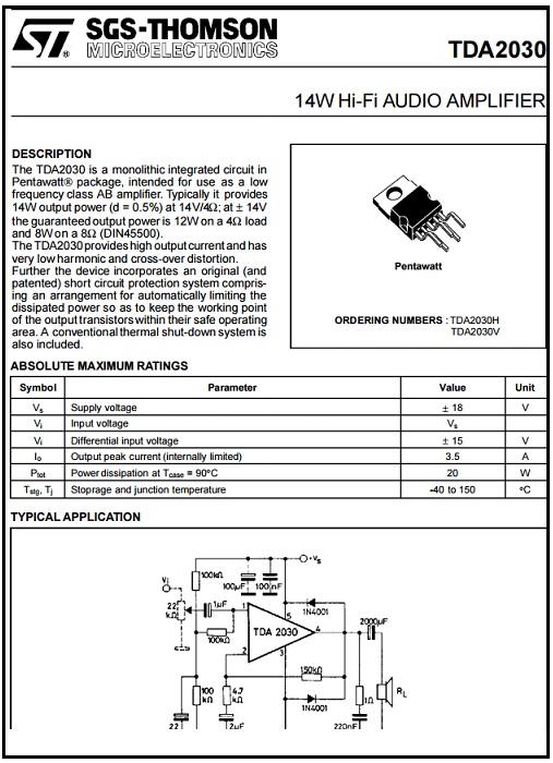 Good Job Mr. Suranga. The TDA 2030 is an Amplifier that exists for quite a long time now. I didn't even know that they still used it in Audio systems. I believe they are originally made by Philips and/or SGS-Thomson. The Amplifier has a Thermal Shut down circuit integrated. But the TDA 2030 is hard to get in places like in the United States. I read that the NTE 1380 is an exact replacement? Mostly 2 of them are used in a Bridged way for more Power. That's probably because of the mostly low Power Adapter Voltages since you need 10 times the power for any sound to be twice as loud. They are normally almost indestructable and could also be found in TV-sets.