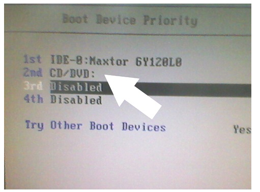 At this point the first option of the Boot was disabled; this was the reason of the complaint with this PC. Therefore it was needed to configure a boot device then, let’s see in the photo below how it was configured.