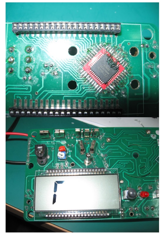 So I probably now have to solder a new AME7106 onto the board and 2 new AME 44 pin smd chips are underway. If I only quickly could exchange this chip without the need of soldering another 44 pins again. Although first checking by connecting only all COM, IN LO , VREF- plus V – and V+ Controller chip supply pins, plus at least one LCD segment to begin with, could be a good way to check and determine the current flow into the chip. If it doesn’t cause Under Voltage or Over current issues and the LC Display works, my DY294 repair is done. But because I made no error in connecting the AME7106 chip and my DY294 still didn’t work as expected, it also could be that still some other controller chip is used. And that is because Controller chip pin3, which normally only as TEST activates all LCD segments, maybe here is used in a special way? But we can be certain that chip pins 1 and 2 (DEEN and INTEN) are not used because they simply are not connected.