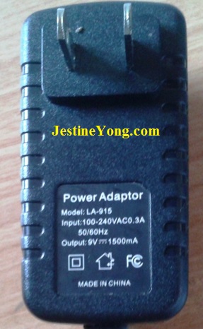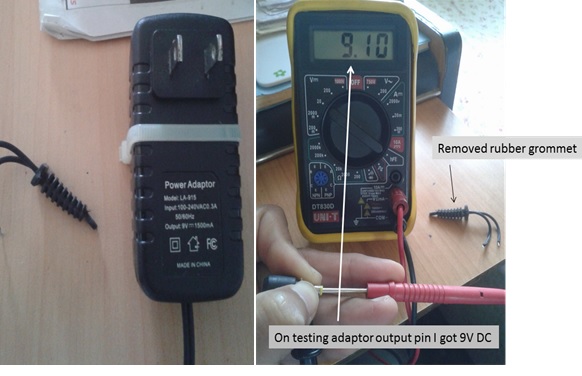 On visual inspection I found this adapter’s output power rating is 9VDC with 1500mA.