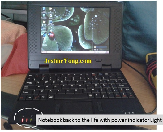 Customer visited my place with 7 inch notebook with the complaint of power On intermittently. When I have connected notebook with power adapter on mains there was no power light LED indication on notebook.