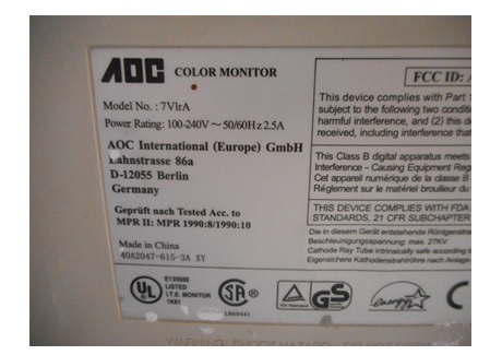 The brand of the Monitor was AOC Model No.: 7VlrA. This horizontal lines on monitor problem usually is due to the vertical section having dry joints.