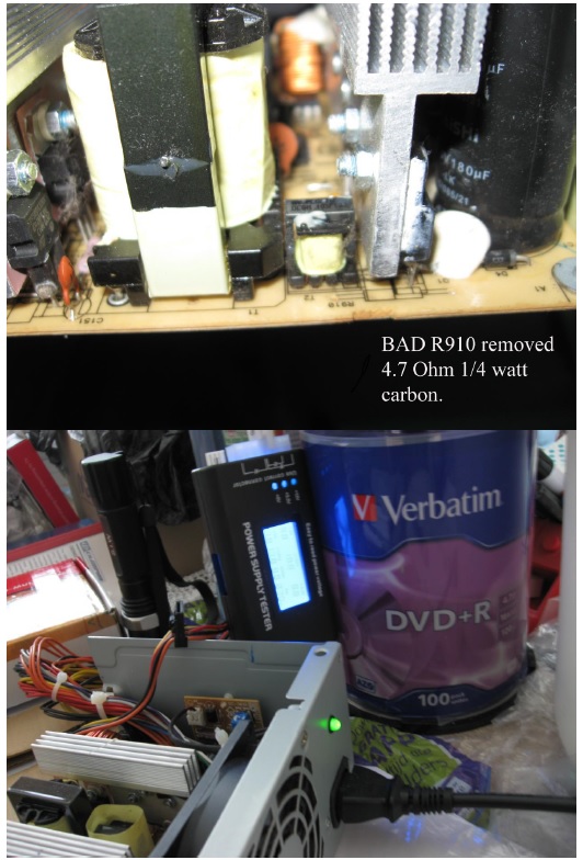 This repair is about those newer and more difficult P.F.C. controlled PS Units. Like the recent very helpful articles from Paris. (Especially the Posts after his recent article were very informative!). I had repaired the simple Power Supply Units with an easier TL494 controller in it before (like a 400 Watt ATX supply that had a bad Cap). But the Power Supply this article is about, took much more time to find the culprit.