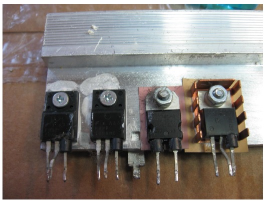 Above view shows the Primary Cooler Plate with the 4 Semiconductors in Close Up. On the Left 2x 10N60C Mosfets. The Diode on the right of them is not easy to read “Withboard 40STVU CHN 031?” and the semiconductor at the right looks like a GEF 035 plus some also unreadable text. But that didn’t matter because they all checked out fine!