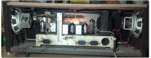 I had got one Philips Novosonic Valve Radio in a very bad condition for a possible restoration from the same place where I had got another Philips Valve Radio a few weeks back. The cabinet was all in bad shape: No back cover, rat had cut many wires underneath including the power cord and dial cord, plywood at top and bottom were exposed and in layers, cone paper of speakers were moth eaten, medium wave coil was cut, but had all the valves in place.