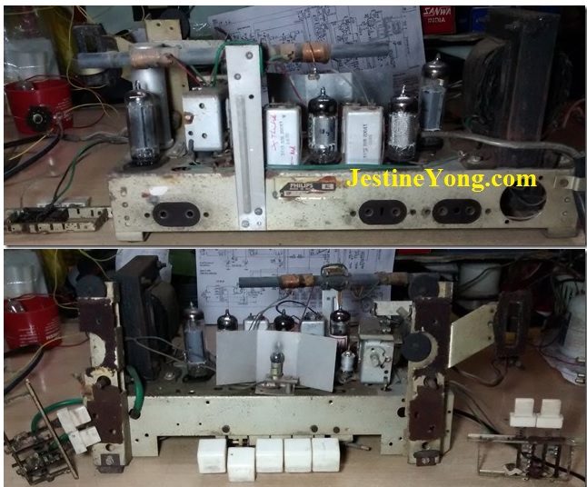 First and foremost, as always is the case, I did a thorough cleaning of the inside with blower (watching a lot of paper pieces and other particles normally used by birds for building nest, flying away from underneath and sides), removed the chassis out, and did one more cleaning with blower and various brushes, and made it ‘qualified’ for entry into my service room! All blowing and cleaning should be done without removing the valves. Otherwise the dust will go into the valve base holes and it will be extremely difficult then to clean it.