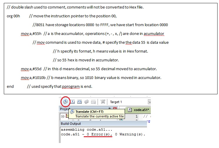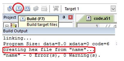 By clicking on translate button you can check if there is any error in code. If there is not error, then click on “build” button it will create “hex” file.