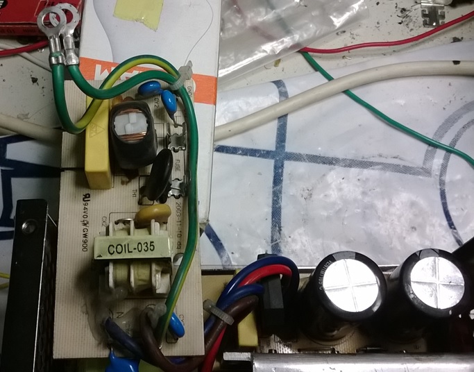 Below you can see the noise suppressor filter assembly along with the (empty) fuse holder of the A.C input fuse.