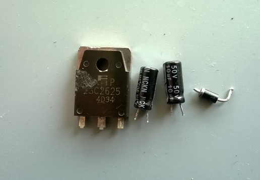 The transistor was a 2SC2625. Because George had no new spare transistors of this type but he has an entire junk-yard there, I searched around and found a similar salvaged PSU using the same transistors which had its fuse intact and apparently had a “no start” problem. I removed both of them from it and after testing them I put them to the unit under repair.