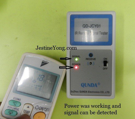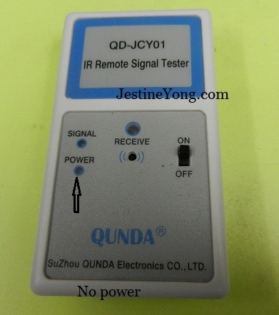 The remote control tester that I’ve bought not long ago can’t be turned on even though I have replaced with new batteries. I suspected the low quality On/Off switch could be the cause of the problem. After opening up the tester I could see only few components. The On/Off switch was tested good and the problem was due dry joint at the battery joints. After resoldered it worked perfectly good. The moment I pressed on the Air-Cond remote control buttons I could see the “Signal” LED lighted up and could hear the beeping sound too. Check out the photos below: