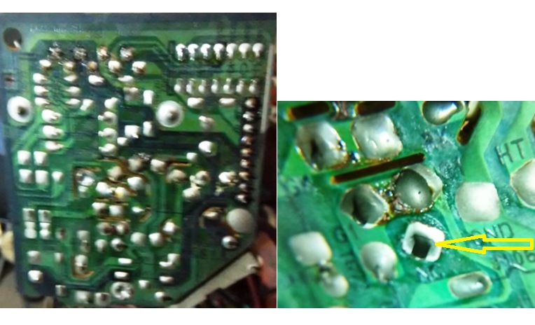 Patched up all the dry solder on the main board as well as the CRT PCB. Cleaned the board and CRT PCB thoroughly. After doing another visual examination, reconnected the board. The set came on, with completely dark screen. When I increased the screen voltage, there was mild green raster with retrace lines. Neither the menu nor any other uController based displays could be seen! When I switched off and did a discharge of the anode, there was no EHT discharge, which showed that the LOT must be weak. So, I decided to replace the LOT.
