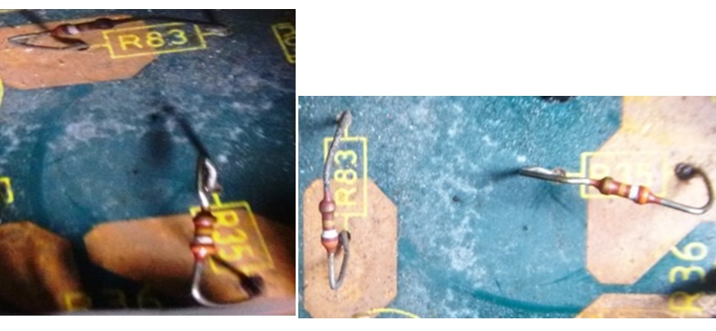 On opening the set and visual inspection, I noticed that there were a few very flimsy resistors soldered, keeping it elevated on the boards, and if I use the blower, it surely will get bent and there is a possibility of these resistors ‘falling in love’ with the nearby component and ‘kiss’ each other! See pictures of a couple of these from a visible portion of the PCB. There are a few more like that, which are in inaccessible area and hidden by other boards from easy view.