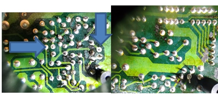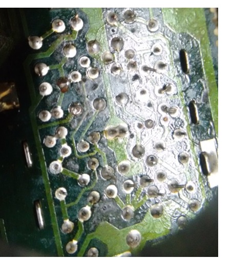 So, I cleaned the inside with soft, long bristled brushes only. Then observed that there were several dry solder spots such as these: