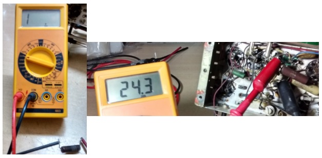 Removed it and gave it for rewinding to my friend, as the primary was short. On doing cold test on the components, noticed that in the B+ rail, 1.5K 5W dropping resistor mounted on the output transformer was cracked and open. Similarly one 18K resistor at the secondary B+ was reading more than 24K.
