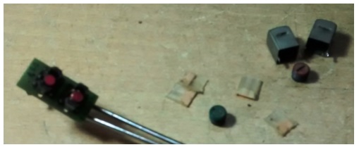 Removed both the coils one by one and removed the primary and secondary, noting down its length on my table. In this, the primary coil has one primary winding and one secondary winding, with only a few turns. The second coil has only one winding. The length of the second coil wire is slightly more than that of the first coil. Took the coil to a coil winding shop run by my friend, who checked and found it was 44 SWG. He had only 45 SWG. So I took it, came back home and hand wound the wire on its tiny former.