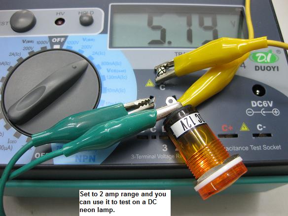 Don’t be surprise that this meter can be used to check on the Neon Lamp. Just connect the Neon Lamp and select 2 Amp range and you could see that the neon lamp will light up.
