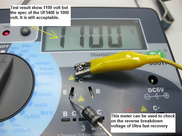 The only little problem I am having with it is when I test the breakdown voltage of zener diode which is 3.3V, the tester only show 1.7V. I know the zener diode is good because it is new and I test it with other meters.