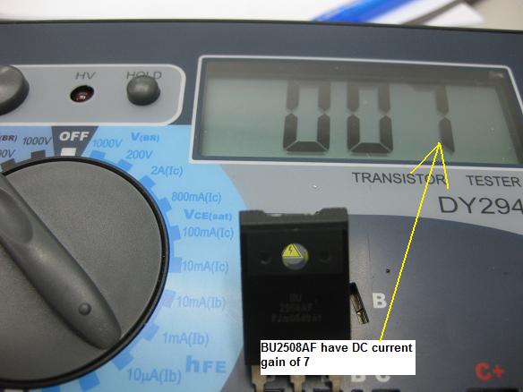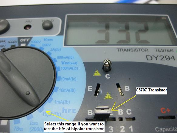 For your information, if the Horizontal Output Transistor (HOT) have a built in damper diode then this tester can’t test out the hfe value. It will just show “0.00” result.