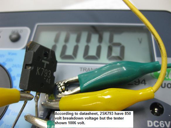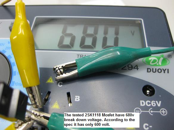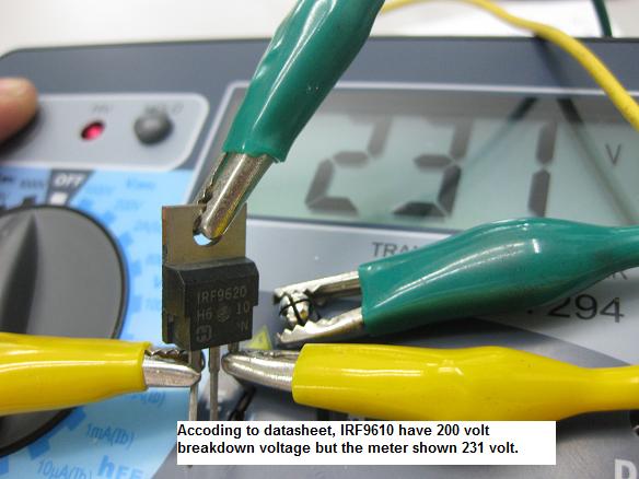 Every transistor have a breakdown voltage and this meter can be used to test on the N-channel and the P-channel Mosfet transistor. The test result were higher than the original value printed on the transistor spec. Please refer to the photos below for more information: