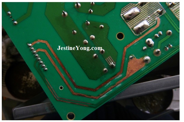 As regards corrosion of copper tracks, their dark coloring manifests their actual condition quite accurately. Then, all one has to do is exactly what I did…