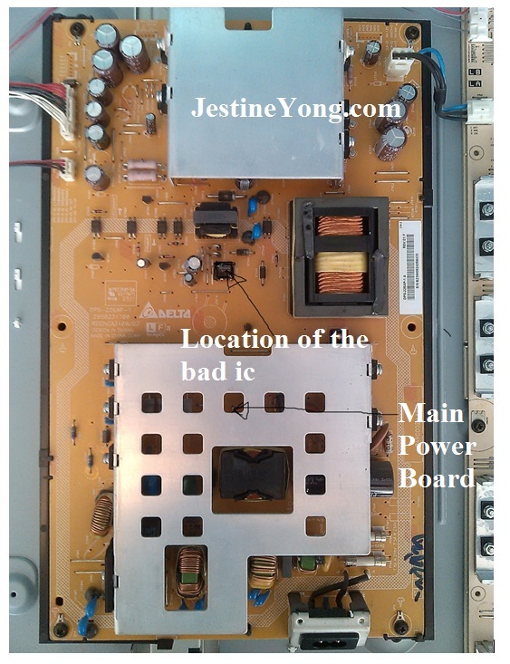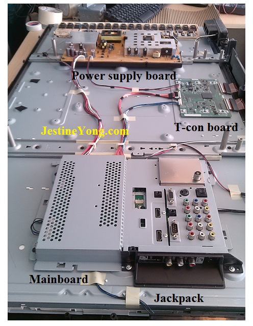 One of the clients in my company called me to check on his 65” Samsung LCD TV and the complaint was no power. I went to his villa and tested the LCD TV and the problem was indeed “no power”. The challenge that I had was about removing the LCD TV from the wall. I managed to remove it and placed it on a soft surface. After that I removed all the screws and successfully opened the back cover.