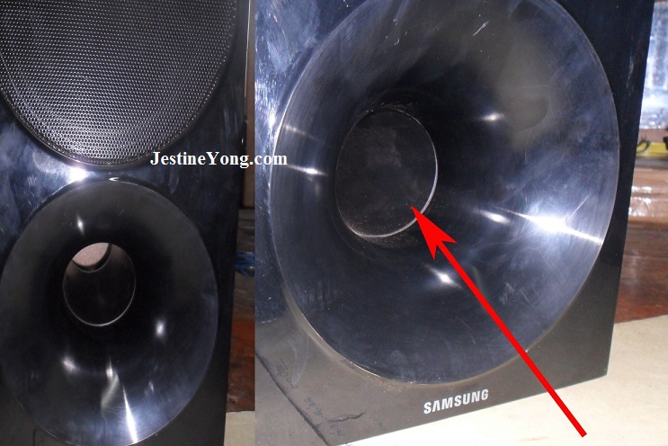 The complaint of this Samsung subwoofer was no sound and the customer said he saw a mouse went into that hole.