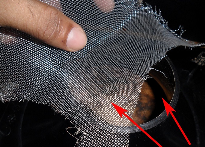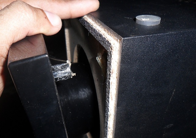I knew that if the customer take back his subwoofer, I can guarantee that the same mouse will attack the speaker wire again thus I came out with a solution which is to put in a metal net to block the mouse from going into the subwoofer again.