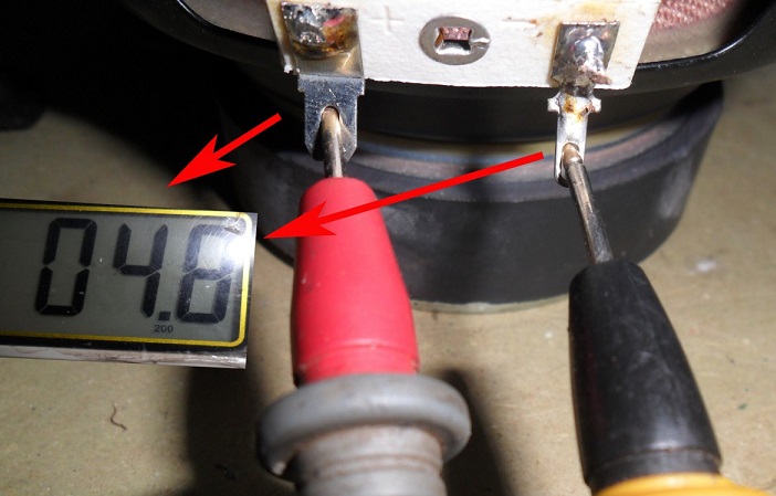 After done the soldering of the new wire onto the speaker I rechecked the speaker Ohm resistance and found that it shows 4.8 ohm which means it was good.