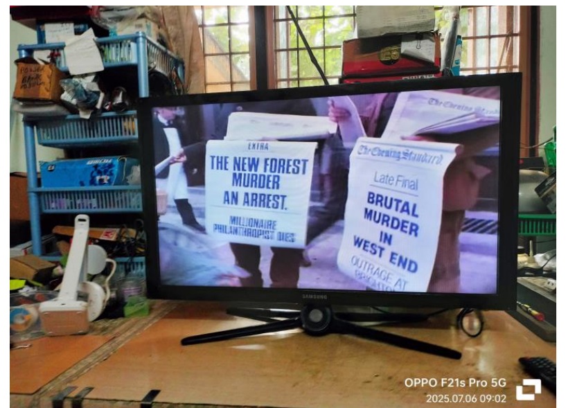 I reached there by around 10.20AM and got the scalar board replacement work done by evening and by the time I could reach my home, it was around 6.30 PM! (I had to take a vegetarian meal from a nearby hotel! I always carry my medicines in my waist pouch for meeting such exigencies) I removed the TV from the car and fixed the back cover only on the next day morning. Then allowed the TV to run for several hours before informing the customer. As the TV was coming to me for the second time with power supply related problems, I insisted on checking the power supply outlets in the customer’s home and hence I carried the TV in my car along with a multimeter and minimum tools and went there. I checked the voltages in their house and found it to be normal 220V AC. Then made enquiries about how they were connecting the cables, its set top box and TV. They showed me a three pin three way adaptor, in which they plugged the mains cords of the TV and set top box. My hunch was correct! The two power pins were loose and I could see darkened contacts inside one of the pins. So, the contacts were intermittent and that is why they had repeated power failures! I have done such inspections elsewhere too. Anyhow, the TV with its set top box were installed directly to the wall plugs and I waited there for sufficient time before departing accepting a cup of coffee and snacks from our friend. Of-course, he paid my charges decently enough to cover all my expenses and make a small profit! Altogether it was a good work that had a pleasant and happy climax. Let us have a look at a picture of the TV (when it was being tested on my work table) before announcing that intense satisfaction was permitted inside its collection bag with a warm welcome: