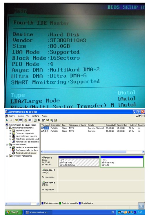 When the lateral cover was taken out (only two screws) and a visual inspection was done, it was decided to extract the HDD; it was a SEAGATE Barracuda of 80 GBytes.