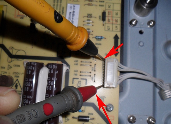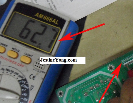 After the installation of the diode, I powered On the LED TV and as expected, I’ve got 62.7 volt at the LED backlight connector.