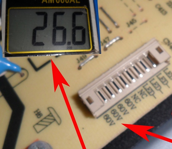 From the board marking of the LED backlight connector, it stated 60 vdc which means 60 dc volt is required to light up the LED backlight. However, from the measurement I’ve got only 26.6 volt which is abnormal.