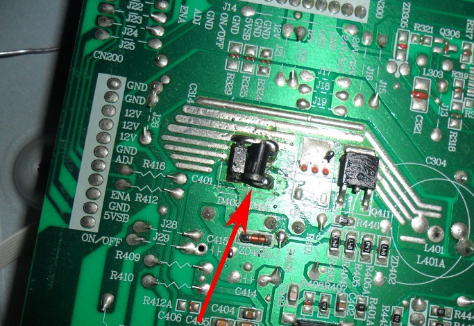 Since I do not have this kind of diode, I used a axial lead fast recovery diode with 3 ampere as replacement. I had to cut away the long lead and slowly position the diode onto the original location