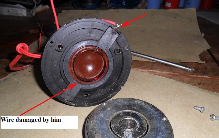 The complaint of this small speaker horn was no sound and it was repaired by someone before.
