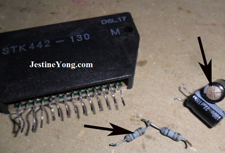 I removed the capacitor and put a new one but the problem is still there. So I am looking for the intergrated circuit STK 422-130 so I can replace it. Hope it works