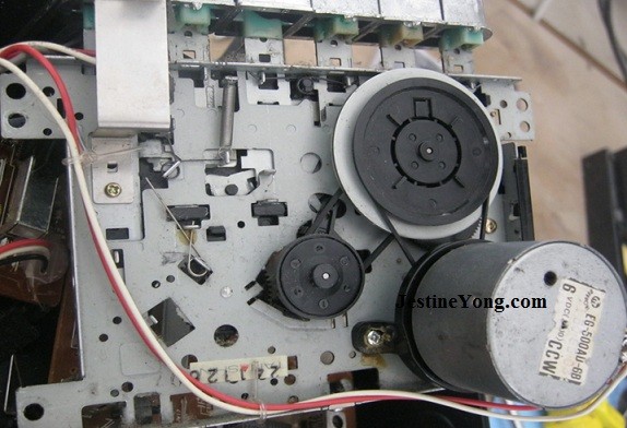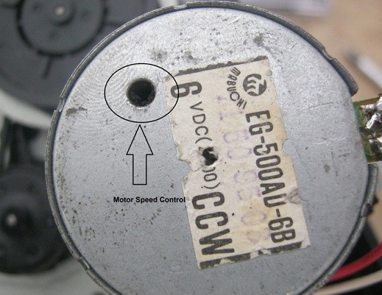 As you can see in the photo, the motor belt seems to be in good working condition. The moment I pushed the play button, the motor did not spin until I gave it a push. It worked for a few seconds then it stopped moving again. This is an indication of bad motor. When I checked the voltage reading at the motor terminals, I could read only 3 DC volts. This motor is 6 DC volts and I should be reading that but for some reason, I was not.