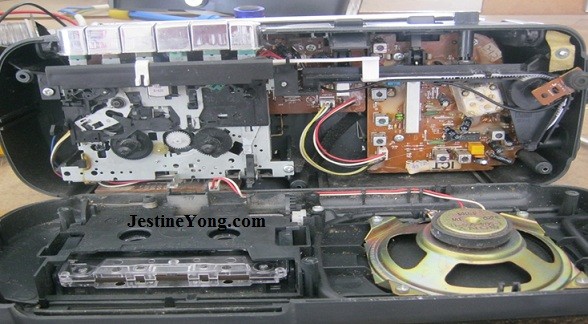 Few screws off and I was able to see what inside the tape player. It was a very simple machine and it should be a simple fix.