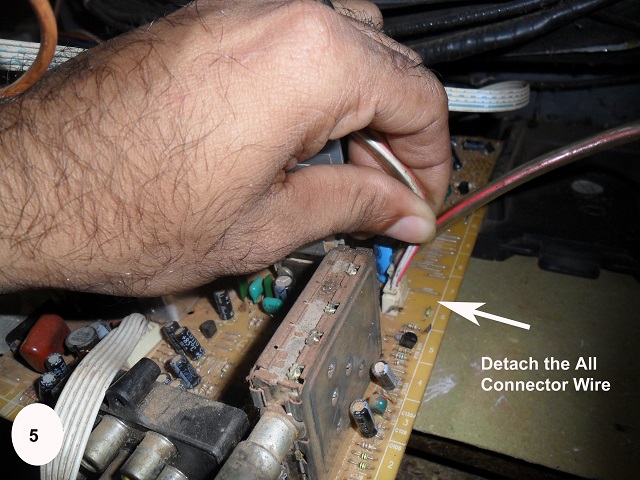 If those repairers have responsibility, they will put back everything but to some they will remove (steal) some of the components and this is not a good practice. If we can’t repair the set, just send it back to the customer. Ok, as usual the first thing to do is to remove the TV cover and clean all the dust. I detached some of the cables in order to remove the circuit board for checking.